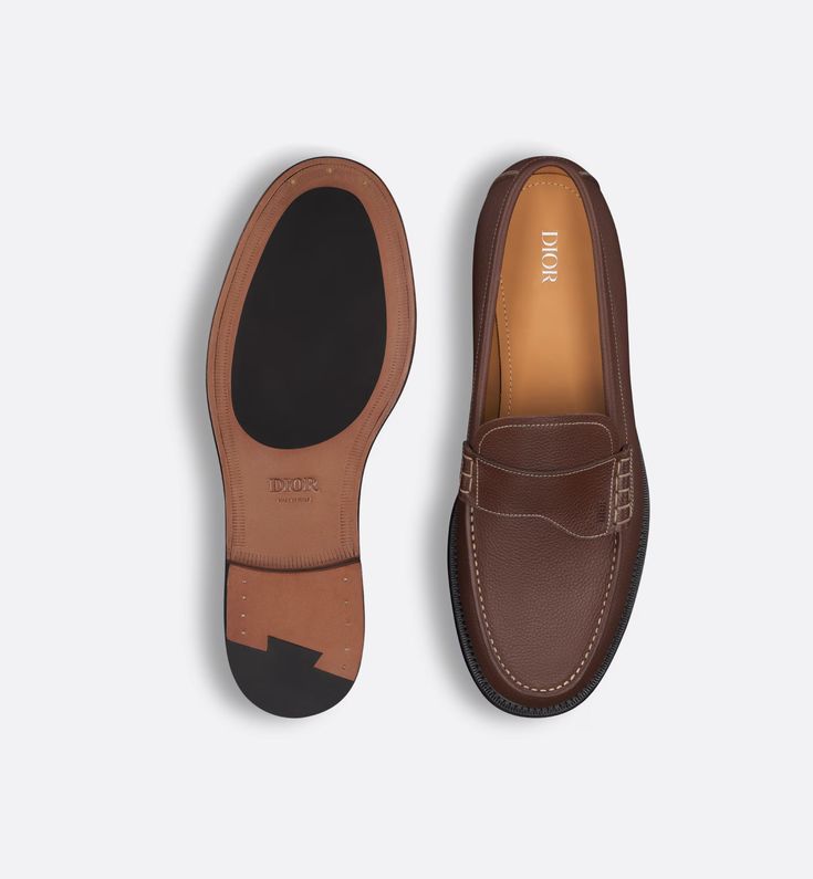 The Dior Granville loafer presents a refined version of an urban shoe. Made in black grained calfskin with contrasting topstitching, the style is embellished with a tonal Saddle band on the vamp. The creation is completed by a leather sole and an engraved Dior signature on the back. The shoe can be worn with any seasonal attire for an elegant and timeless look.